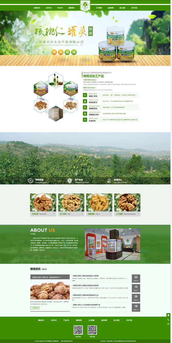 石家莊市丸京干果有限公司是一家專業(yè)從事農副產品深加工及進出口的企業(yè),公司自1995年開始進行核桃仁加工,經過20多年的發(fā)展,現(xiàn)已擁有核桃油、堅果粉、堅果罐頭、出口級各路核桃仁等系列產品,初步建成國內品種較全、生產標準較高的核桃仁深加工生產線,其中核桃油技術、脫脂核桃微粉技術獲得了河北省科技成果證書。公司是河北省著名商標企業(yè)、河北省優(yōu)質產品企業(yè)、國家扶貧龍頭企業(yè)、河北省林果產業(yè)龍頭企業(yè)、石家莊市農業(yè)產業(yè)化重點龍頭企業(yè),現(xiàn)已經形成了產加銷一條龍、農工貿一體化的產業(yè)化布局格式,展望未來,真誠歡迎廣大有識之士,與我們共同開發(fā)核桃全產業(yè)鏈產品,互惠雙贏,共創(chuàng)未來!