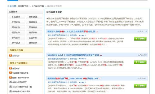 樣例三、頁面主題為“綠色軟件下載吧”,但搜索結(jié)果中的內(nèi)容并非圍繞該主題的軟件下載,完全不相關(guān)。