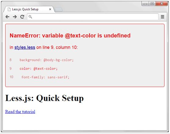 有幾種方法可以安裝和配置較少,但對于發(fā)展中在瀏覽器中或者如果你只是感興趣嘗試而不需要一個web服務(wù)器上安裝它,最快的方法是引用less.js圖書館在HTML文檔中。讓我告訴你怎么做?