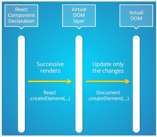 你可以找到更詳細(xì)比較角與反應(yīng)皮特·亨特(在Facebook工作/ Instagram)。反應(yīng)快采用不同的方法反應(yīng)DOM相比其他框架。它不會(huì)讓你直接使用DOM。它引入了一個(gè)層,稱為虛擬DOM,您的JavaScript邏輯與實(shí)際的DOM。