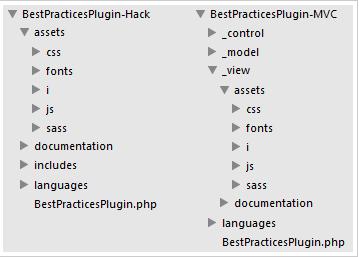 4、考慮使用MVC設(shè)計(jì)模式。WordPress插件獲得很大收益時(shí)使用MVC體系結(jié)構(gòu)創(chuàng)建的。模塊化、可維護(hù)性和許多其他原因,沒有更好的選擇。MVC使得它很容易清潔和組織你的插件架構(gòu)。奇怪的場合,我仍然使用我稱之為“野生代碼”架構(gòu)。這是給小插件,一次性的有時(shí)演示功能。下面你將看到這兩個(gè)目錄結(jié)構(gòu)我通常使用插件:“野生”架構(gòu)版本向左、向右和MVC。它會(huì)給你一個(gè)更好的主意關(guān)于MVC的區(qū)別可以: