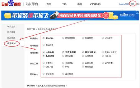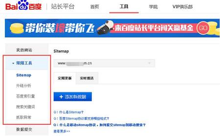常用工具設(shè)置的初衷是好的,方便站長們盡快找到最需要的工具。但是也會給新人們造成困擾,sitemap、外鏈分析等到底屬于哪個大類呢?是屬于信息提交還是數(shù)據(jù)分析呢。所以我建議新人們先不要使用這個常用工具,而是多觀察多使用!