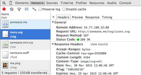 檢查GZip壓縮。驗(yàn)證GZip壓縮實(shí)際上是工作在SVG文件,我使用Chrome DevTools。
