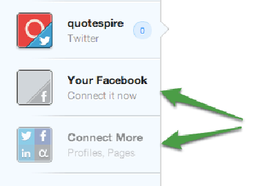 我們認(rèn)為,有一個(gè)聰明的“+”標(biāo)志圖標(biāo)將顯示人的方式來(lái)添加其他社交網(wǎng)絡(luò)賬戶。然而,我們不斷收到電子郵件從我們的用戶要求我們?nèi)绻幸环N方法來(lái)連接他們的Facebook和LinkedIn賬戶緩沖區(qū)。所以我們所做的是改變的各個(gè)方面“連接”按鈕,使其一個(gè)占位符圖標(biāo),使用更大的加號(hào)和許多其他的設(shè)計(jì)調(diào)整。