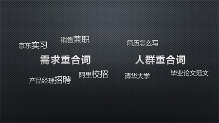 (2)人群重合 若希望顯著拓展網(wǎng)站SEO流量,往往需把網(wǎng)站的目標流量范圍放到更廣的用戶群體重合上面。對于實習僧,人群重合詞如:“清華大學”、“畢業(yè)論文范文”等等類型。