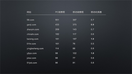 從該數(shù)據(jù)明顯可見的是,三大招聘網(wǎng)站(智聯(lián)、前程無憂、中華英才)的流量其實并不理想,其流量很顯著的差于58同城和趕集網(wǎng)。