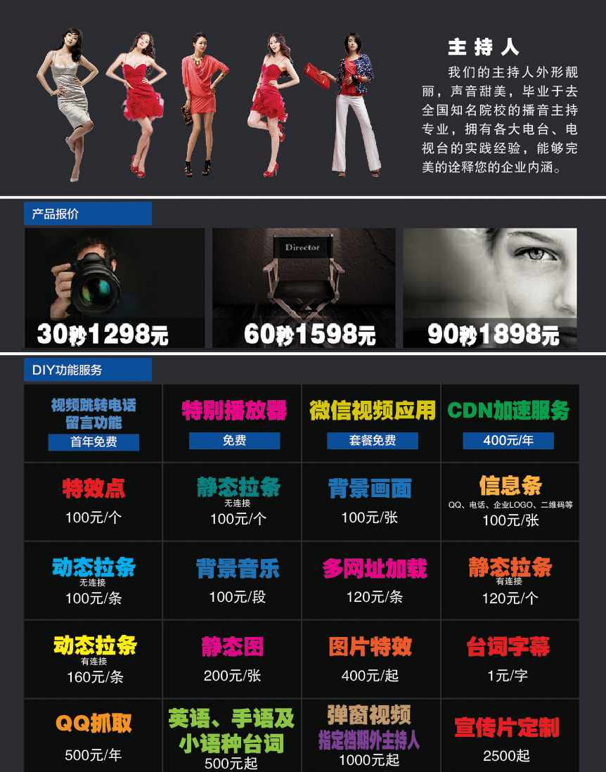 一般情況下,顧客進入網(wǎng)站6秒之內(nèi)就會對是否繼續(xù)瀏覽做出判斷,所以要抓住訪客的注意力,最好的方法就是用一個真實生動的網(wǎng)站主播,在旁邊指導(dǎo)您,介紹您的事業(yè)或設(shè)計,以情感交流的方式,使您在同行業(yè)同站的競爭中與眾不同!